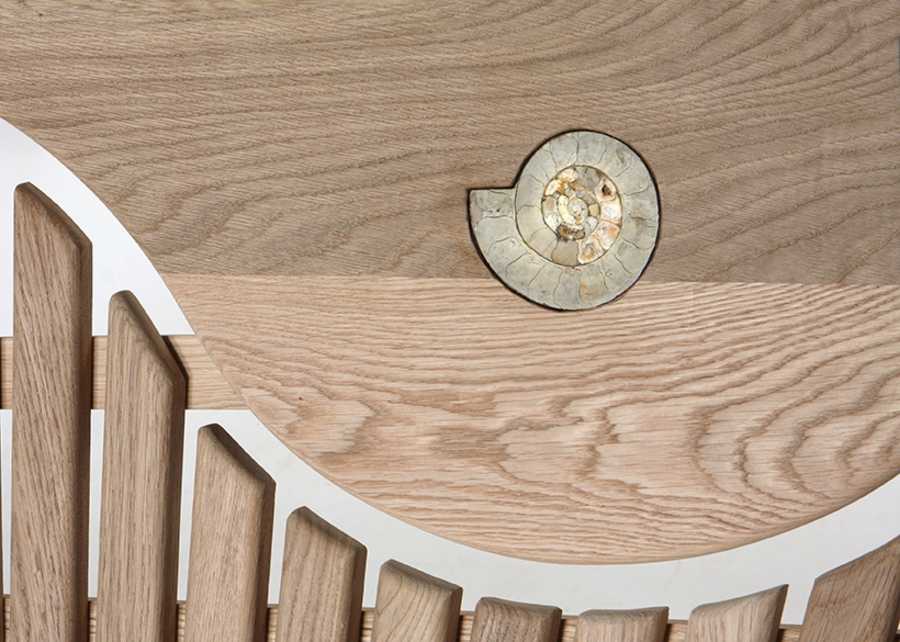 They are commonly found as fossils, formed when the remains or traces of the animal became buried sediment that later solidified into rock. What better way to showcase this heritage than to inset a polished ammonite in to your swing seat?