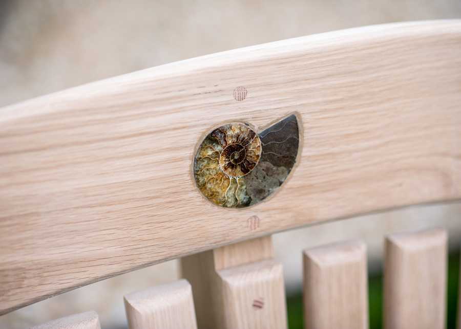 Making your swing seat a really unique piece of garden furniture is one of our favourite things, embedding ammonites into the seats and benches is a really popular choice.