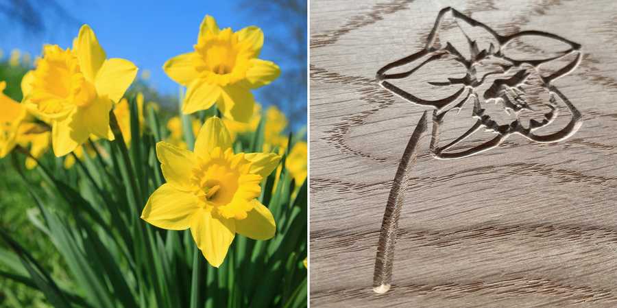 A small carving engraved in to the back of your seat. Each month of the year has its own flower. Why not choose flowers for your own birth month, or the birth months of someone you want to recognise or pay tribute to? Individual carvings vary in size according to the flower, but are approximately10cm tall including the step and between 5cm and 8cm wide.
