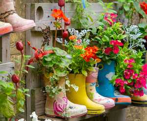 A delightfully original idea for a planter is to make use of your unwanted welly boots. Feel free to paint or decorate however you see fit—then attach your old boot to a fence post or simply place it on the ground. A durable, waterproof, whimsical little planter.