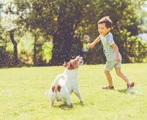 A variation on the water entry—but with added bubbles. A bubble dispenser will keep a dog entertained and intrigued for hours. You can just sit back, relax, and shoot those soapy spheres into the air!