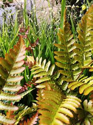 The Chelsea plants will form the beginnings of a scheme for this part of the garden with more added to link to the planting we did last year. There are areas of shade in which we will plant Dryopteris erythrosora ferns, the bronzy fronds picking up the ruby red Astrantia major ‘Roma’ and russet Anemanthele. Pimpinella rosea, Scabiosa ‘Moondance’ and Cirsium rivulare will enjoy the hotter, sunnier beds and will be held together by a ground covering layer of Lotus hirsutus and scrambling Trillium rubens. Running through and linking the new planting will be evergreen Luzula nivea and Anemanthele, with Briza media and Melica altissima ‘Alba’ adding twinkly highlights from their delicate flower spikes in the shadows. Planting drifts of bulbs though the grasses in the beds will offer bursts of colour and interesting forms and will add other layers of interest throughout the year.