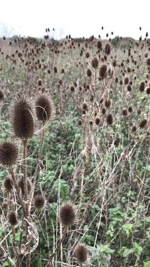 In winter I love Dipsacus fullonum (teasel) seed heads for their silhouettes, covered in frost, or even better, with small birds on them eating the seeds. Spring has an abundance of small ground covering weeds springing into action and one of my favourites is bright purple or pale blue Viola odorata (sweet violet).