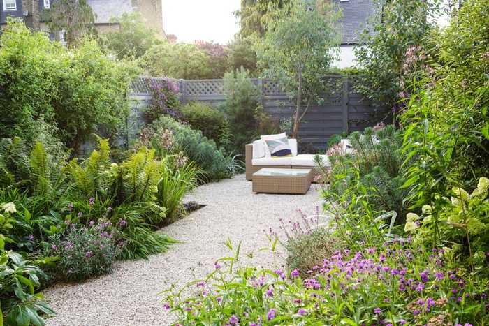 When I researched prices of fancy designer options though, we weren’t in a position to afford them and I was forced to reuse the old slabs. In retrospect this is the best thing to have happened because once cleaned, their colour worked well with the planting and formed a satisfying grid. Other designers asked me where I’d sourced them and I don’t think they believed me when I said B&Q for £3 each plus a few decades of wear-and-tear. Most of the time we repurpose old patios and concrete as the sub base for the new patio, reducing transport and waste.
