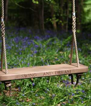 Personalisation: Oak seats can be carved with a personal inscription of up to twenty letters – a detail that has made our rope swings one of the most requested wedding, retirement and significant-birthday gifts on the site.