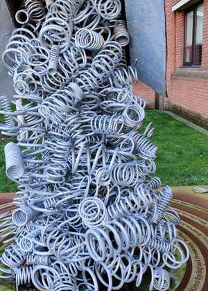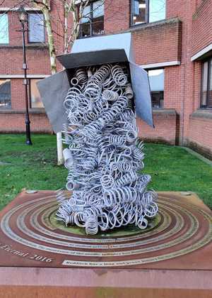 When Redditch Council proposed a plan in 2010 to celebrate the achievements of the spring industry in Redditch, Davies Springs were keen to become involved in helping to shape the plans. All companies, with connections to the spring industry, were invited to a meeting to discuss the commissioning of a statue. Mike felt very strongly that springs should be represented in the town, as there were already two pieces of art celebrating the needle industry as well as the museum. Around 30 companies attended but only 2 agreed to be on a steering group with the council (Davies Springs being one of them). Art students at the local college were asked to design models and the steering group then chose the best three. The local community were then invited to vote for the winner. The council then commissioned the artist Tim Tolkien (the grandson of JR Tolkien who wrote The Lord of the Rings and The Hobbit) to make the piece.