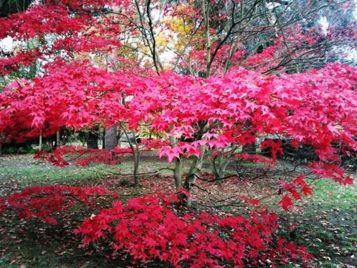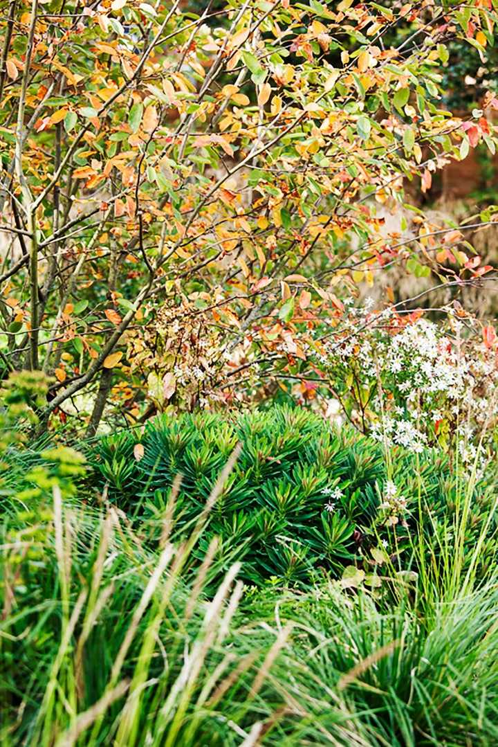 Coming right down to ground level, the delicate autumn flowering crocus will create carpets of colour in dappled shade or sun and a favourite of ours is Colchicum speciosum. A soft purple petal with a yellow centre that catches the last of the autumn light and makes a colourful glow when planted and naturalised within a lawn.