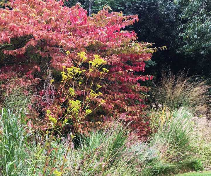 Some plants in the Sitting Spiritually garden with colourful interest at this time of year are: