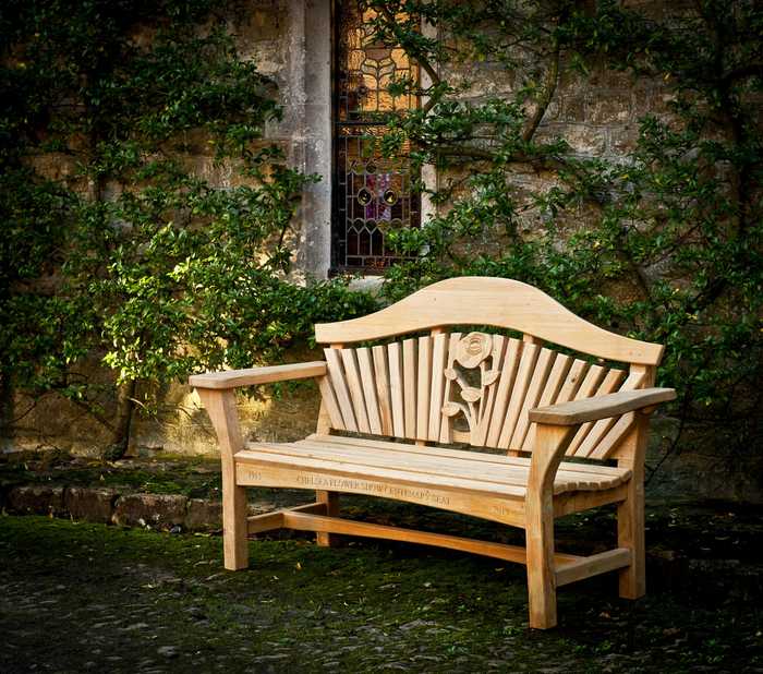 This bench would naturally complement a rose garden flawlessly, due to the intricate carving of a rose in the centre of the piece.