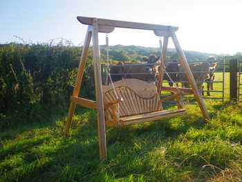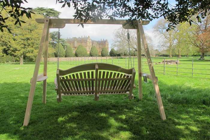 The timber of our outdoor swing seats looks splendid when offset by the vibrant green tones of a fruitful and thriving lawn.