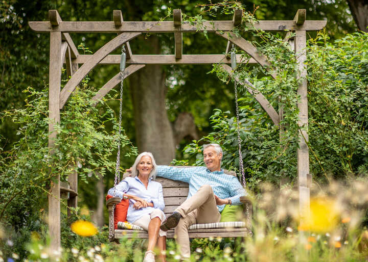Minterne is a stunning country House & Himalayan Garden landscaped in the manner of Capability Brown and trailing around a mile in length, Minterne boasts a world renowned and completely unique collection of Himalayan Rhododendrons and Azaleas, with Spring bulbs, Cherries, Maples and many fine and rare trees. Wander the trail and enjoy the chain of small lakes, waterfalls and streams. With an abundance to see from the snowdrops in winter, to spring bluebells through to summer azaleas and hydrangeas, the garden is full of interest throughout the year. The gardens feature in The Telegraph’s top 25 gardens to visit. Minterne have a Tranquillity Fan Back Swing Seat.