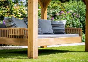We originally designed and made the Swinging Day Bed for a garden designer working on a garden in the South of France, we quickly realised it was a thing of beauty and set about putting it into production in our Axminster workshop. We launched it at Chelsea Flower Show in 2017 and it was an absolute runaway success and soon we were sending them not only all over the UK, but also to Majorca, Italy, Spain and even Australia!