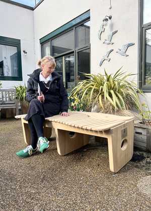 The bench was delivered recently and is currently in our dementia friendly courtyard. This garden space is accessible to patients, staff and visitors to take a time out of the clinical or waiting areas of the hospital. In time the bench will be part of our new Breast Cancer Unit which is currently under construction.