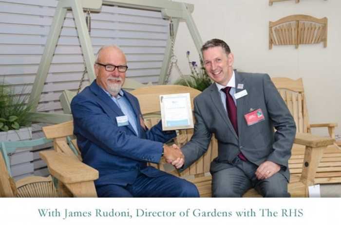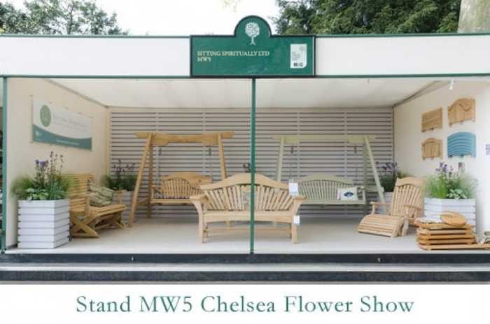 Our visit to Chelsea this year was also given a big boost by an article which appeared in the Weekend Telegraph on the previous Saturday May 16th which brought many people to our stand. It was a new experience for me to be ‘recognised’ but apart from people wanting to find out more and place orders, many people were disappointed not to meet our Jack Russell Delilah who shared the Tranquillity swing seat with me in our garden in Lyme Regis in the photograph. Sadly she was otherwise engaged and couldn’t be on the stand to meet her public!