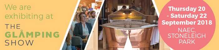 We are delighted to be exhibiting, for the first time, at The Glamping Show on Thursday 20th - Saturday 22nd September, at Stoneleigh Park, Warwickshire. You can save yourself queuing and register for free tickets now Alternatively people can simply arrive on the day, but will need to fill in a registration form