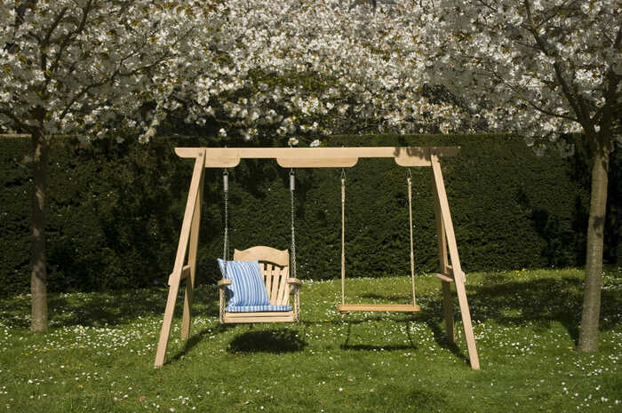 This lovingly-crafted swing set is for adults, children, and those of you who are forever a child at heart—and everyone in between! There’s no age restrictions on the simple pleasures of this versatile garden swing.