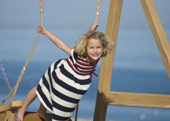One frame, three seats—you choose the best seating combination for your needs. Whether that is individual single swing seats or old fashioned rope swings, it’s your choice. Then down the line consider adding a four seater swing seat in place of those rope swings, but with the option to swap back easily when the fancy takes you.