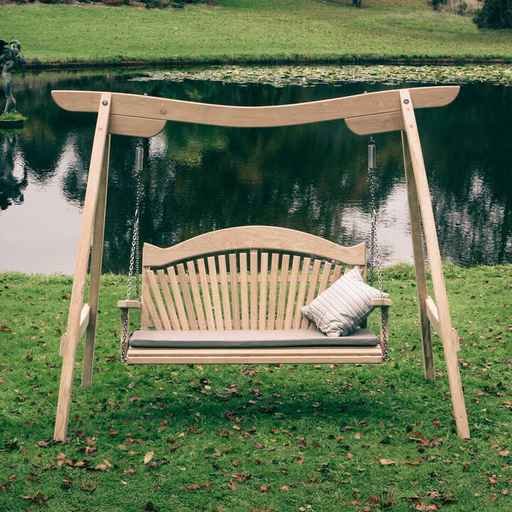 The swing seats are made to order and handcrafted in the South West of England in our workshops. Normal manufacturing time is 3-4 weeks. Delivery is via a professional removals company, who will be on-hand to assemble your swing seat on-site, and will invite you to sit on it to ensure it's set up just right. The delivery cost is dependent on where in the UK you are, and is calculated in the checkout process. International delivery is available.