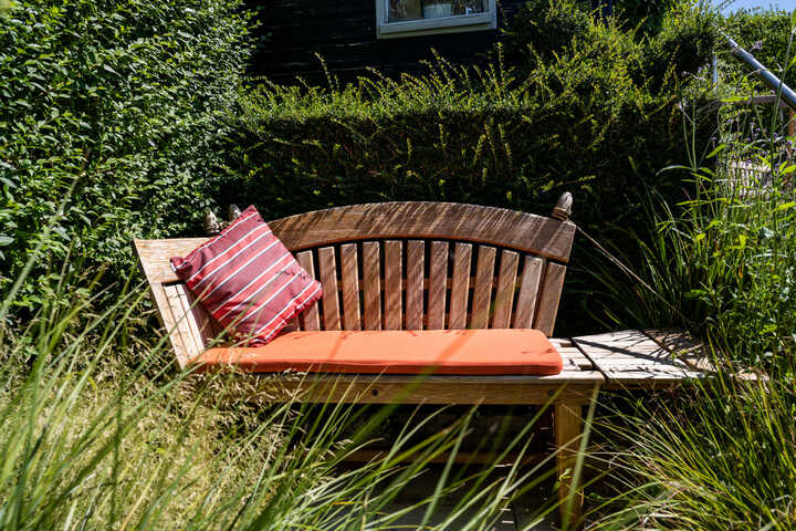 The Knole Garden Bench stands out as a feat in ingenuity and design. The ropes attached to the back can be unfastened and the side panels will come down, acting as a tray or side table. Thus, allowing you to enjoy al-fresco meals or working outside with ease.