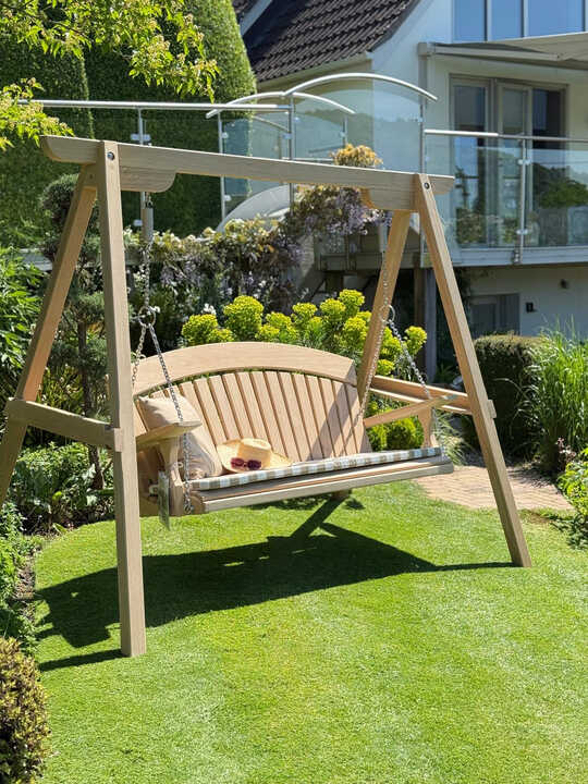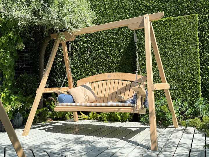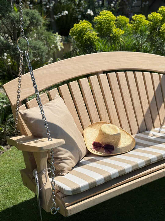 For our oak swing seats and day beds we select Prime Grade air-dried oak from Hewins Timber - a timber chosen for its exceptional quality, clarity and suitability for fine outdoor joinery. This makes it a superb choice for visible surfaces and refined furniture applications where visual consistency and structural integrity are essential.