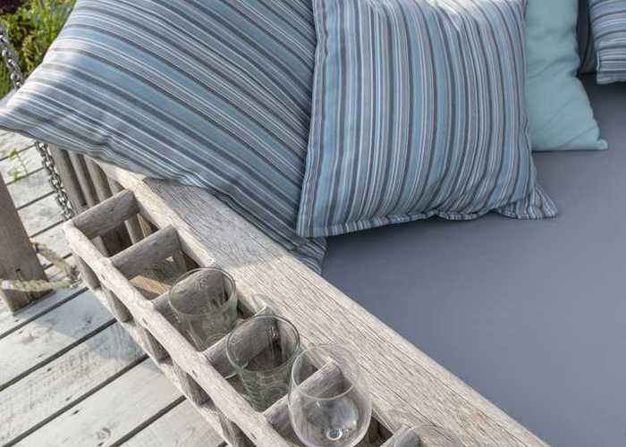 Your day bed can hang from one of our bespoke pergolas, or from your own ready-made structure—whatever is the best fit for you and your garden. There’s an array of accessories to choose from, too, when creating your perfect day bed; from drinks holders and UV protection screens, to beautifully handmade weatherproof cushions.